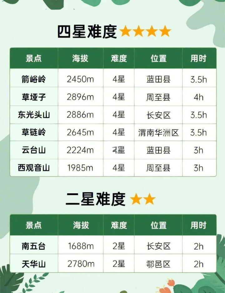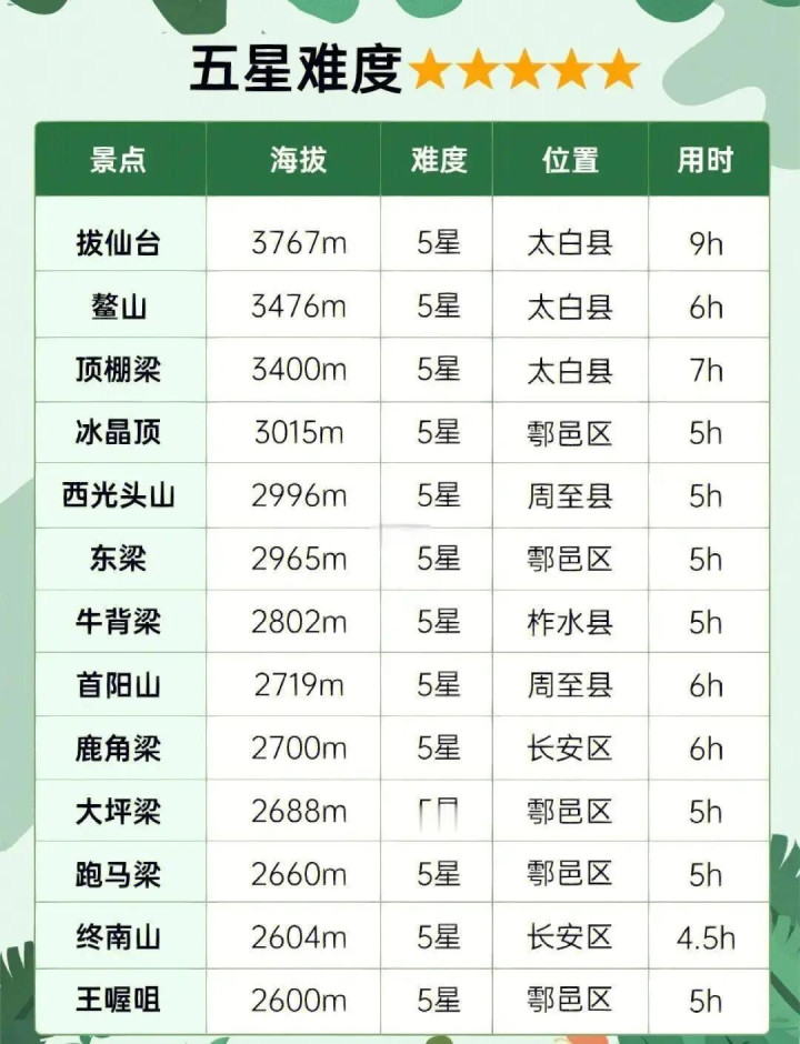 位于秦岭沣浴内,是一座集当然奇不雅与东说念主文传闻于一体的登山胜地。这里历史悠久,东说念主文与风光共存。主峰向阳峰海拔2000米。