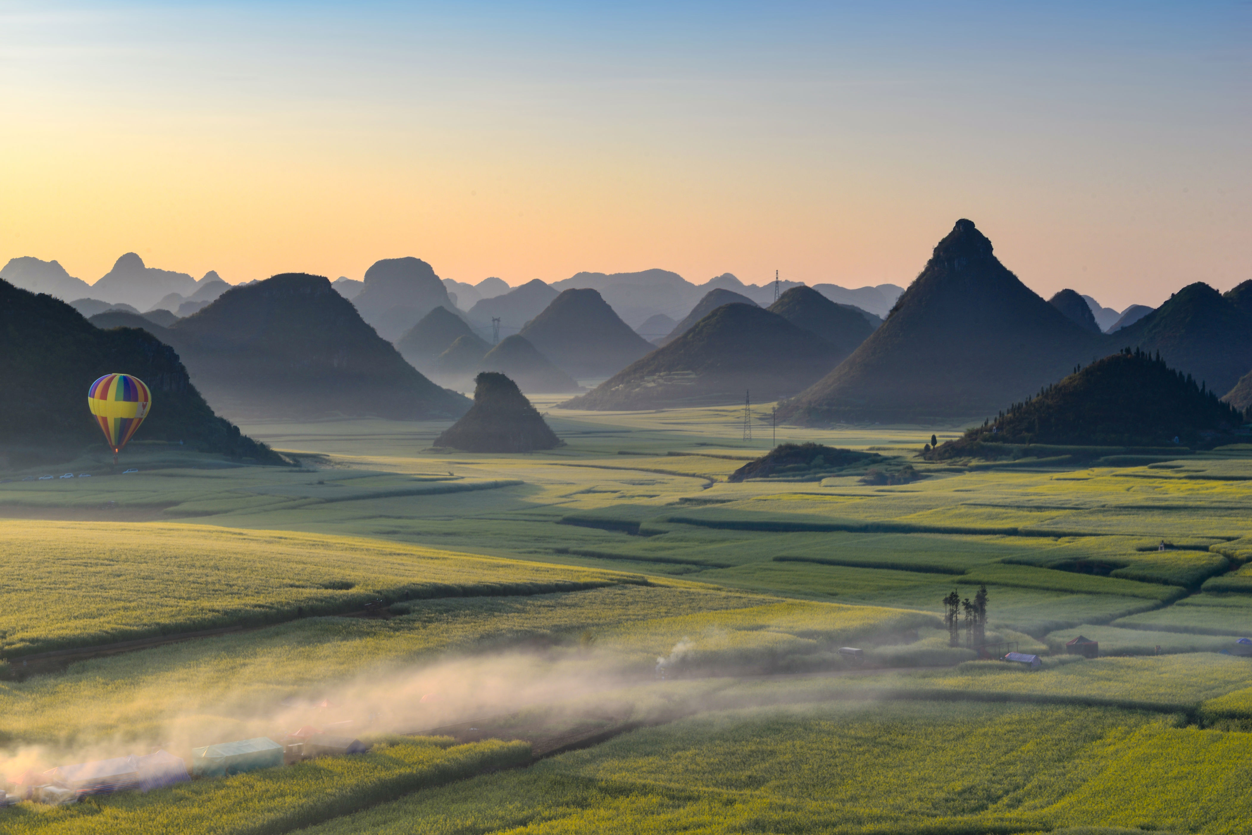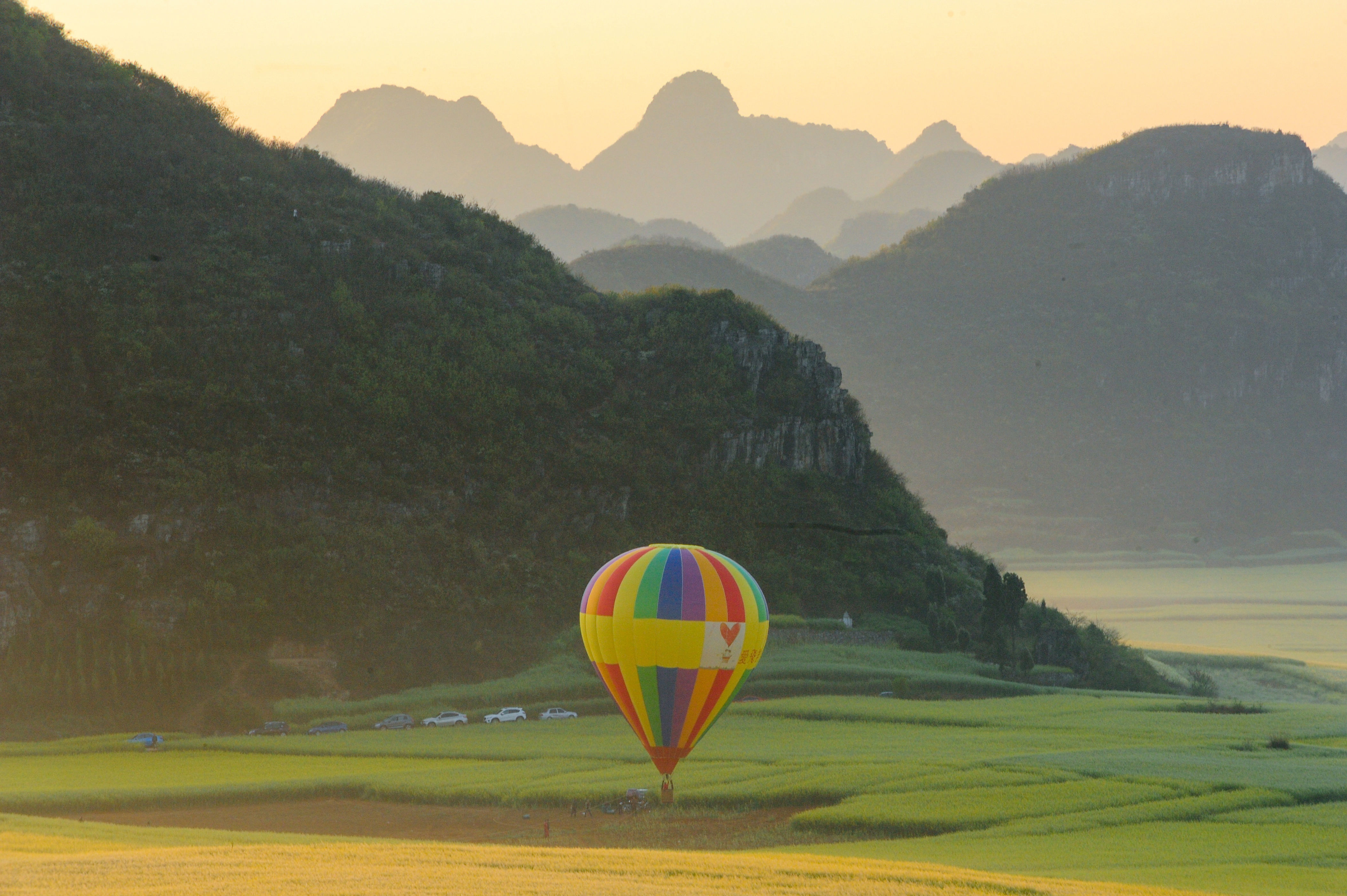 金鸡峰丛,峰林峰从连城片,每年花期的时分,漫天匝地的油菜花,如画的原野雅瞻念,勾画出一幅幅自然画卷。登上不雅景台,不错看到贪婪贪婪的金色海洋,绵延调动的山丘点缀在油菜花海中,映入眼帘的金黄色花海,好意思得令东说念主窒息。