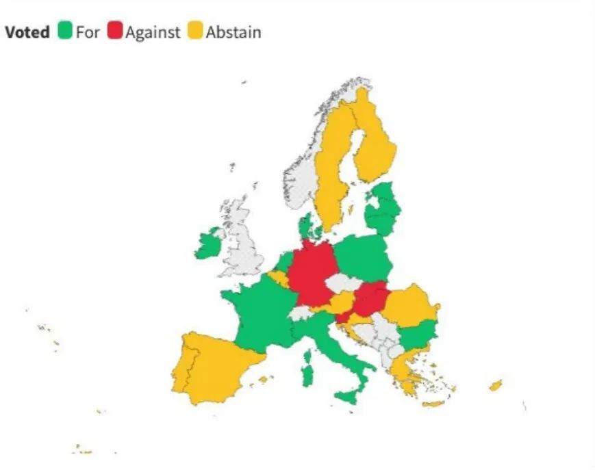 征收关税的投票决定自大出欧盟政府的极大决心,但投票恶果并非实足一致。最终的投票恶果分辨重重,十票嘉赞,五票反对,十二票弃权(见图4),也就是说,有近一半的欧盟成员国莫得在本次决议中投票。