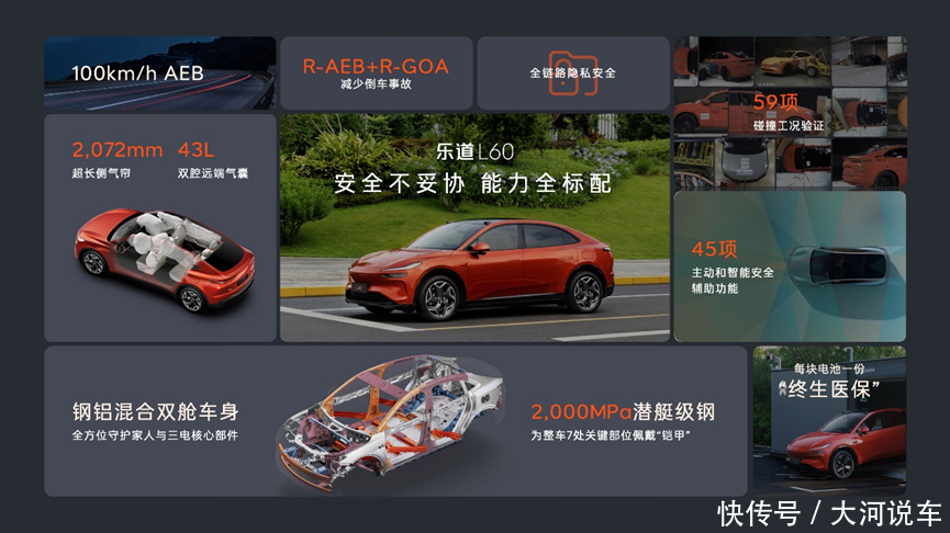 安全欠妥洽,智力全标配全家东说念主出行,安全驻守更要加倍。乐说念L60按照“中欧双五星安全标准”建造,钢铝搀杂双舱车身、2000MPA潜艇级钢、59项最初行业标准的碰撞工况测试以及全系标配的45项主动安全和智能补助功能等,为用户提供全场景、全宗旨的安全看护。