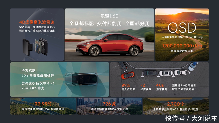 不仅如斯,乐说念L60全系标配OSD乐说念智能驾驶系统,请托即能用,宇宙都好用。高速城快领航补助NOA宇宙掩饰率99.99%;全场景领航补助NOA请托即有726城,掩饰2700+县级行政区;智能停车稳准快,泊入胜利率高于99%,不到40秒舒缓入位。