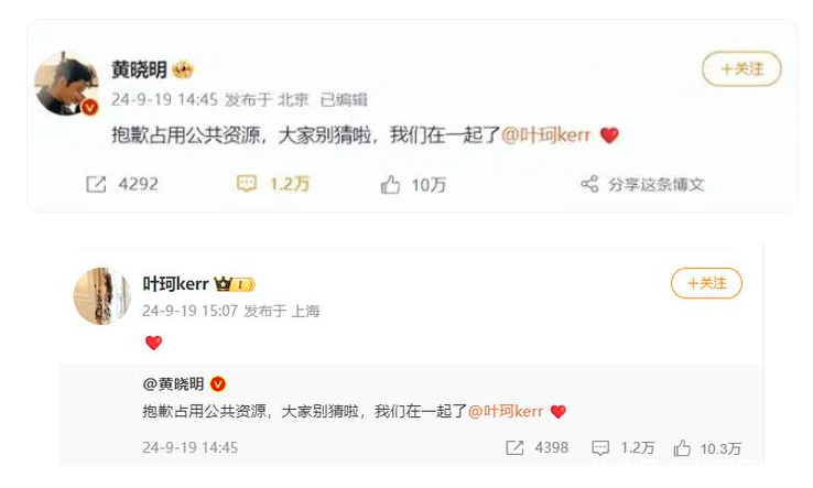 在黄晓明发布了此条官宣信息,并@了当事东说念主叶珂后,叶珂也转发了此条声明,并赐与了回复!