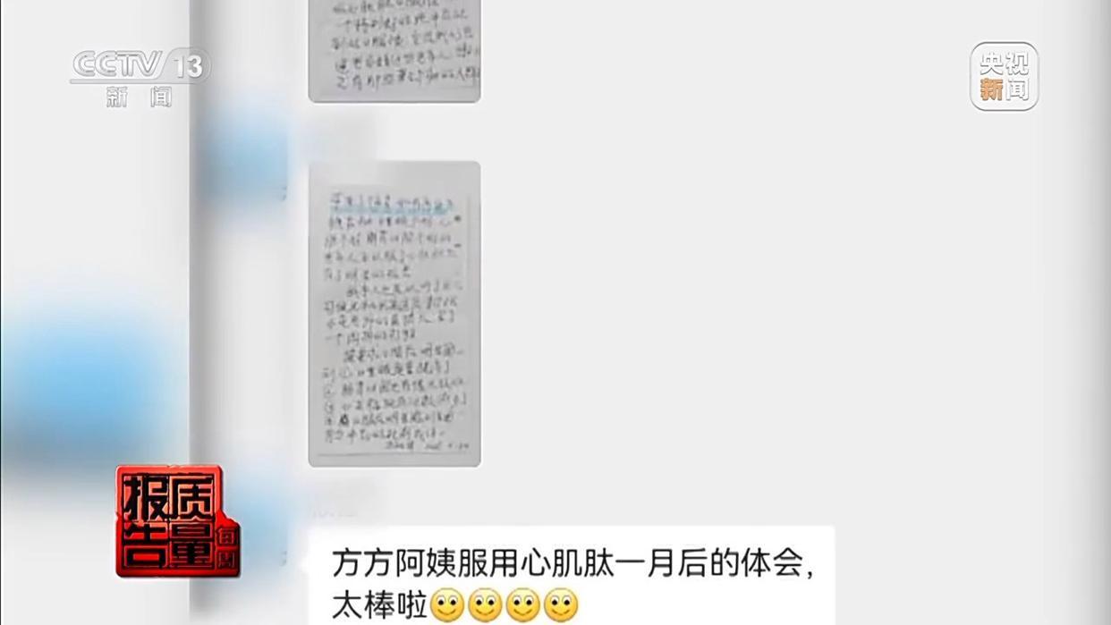 直播间主播宣称,这款“心肌肽养分液”是一位太医传东说念主把柄家传秘方研发的,还例如称有位82岁的老奶奶,为了测试心肌肽的成果,挑升从1楼爬到17楼。夙昔爬几步就累得不行,面前不息爬到17楼皆没事。