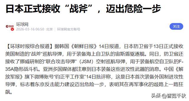 外媒报说念,日本守护省3月13日慎重接受了好意思国制造的“战斧巡航导弹”,以及挪威研制的“集合报复导弹”。这不是买两件兵器那么粗陋,这是把“能打到谁”的选项写进了政策。