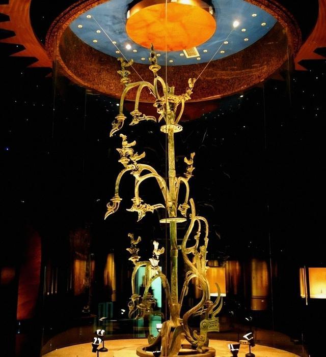 先来看最直不雅的把柄:青铜神树。三星堆二号祭祀坑出土的一号青铜大神树,高达3.96米,是中国考古发现中体量最大的单件青铜文物。这棵神树分三层枝桠,每层三根树枝,每根上翘的树枝上都站着一只鸟,一共九只。