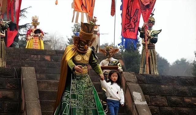 这个叫烛龙的神,东说念主面蛇身,眼睛是“直目”,等于竖着的、凸起的。东晋《华阳国志·蜀志》里也记录,古蜀国的第一个王叫蚕丛,“其纵目,始称王”。纵目,等于眼睛凸起。三星堆的纵目面具,很可能等于蚕丛或烛龙的神像。